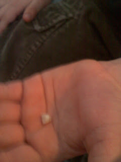 He wrote a note to the toothfairy as you can see. It says, "Dear Toothfairy. I git this note for you. Form Carson" This kid is so stinkin cute! Love him!